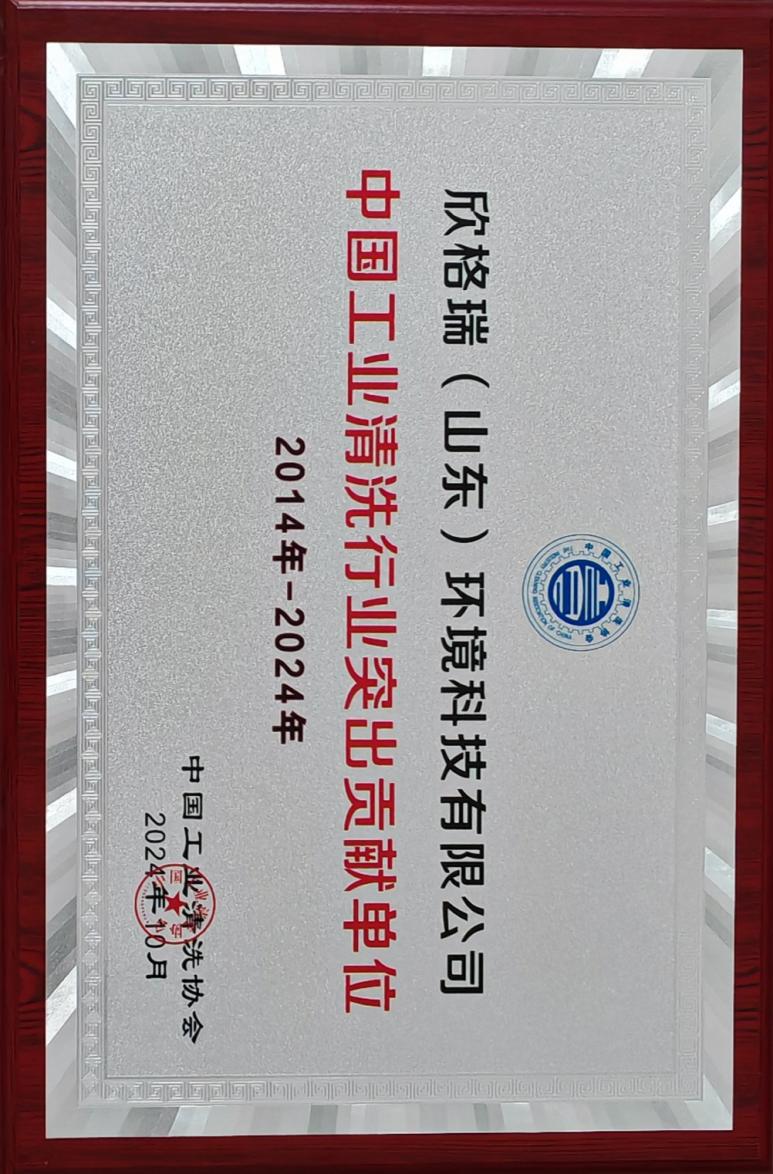 近日,在“第二十三屆全國(guó)清洗行業(yè)技術(shù)進(jìn)步與產(chǎn)業(yè)發(fā)展論壇暨中國(guó)工業(yè)清洗行業(yè)四十年暨新時(shí)代十年(2014-2024)慶典”期間,欣格瑞(山東)環(huán)境科技有限公司在全國(guó)700多家工業(yè)清洗企業(yè)中脫穎而出,榮獲“中國(guó)工業(yè)清洗行業(yè)突出貢獻(xiàn)單位(2014年-2024年)”榮譽(yù)稱(chēng)號(hào);中國(guó)工業(yè)清洗行業(yè)協(xié)會(huì)副理事長(zhǎng)、欣格瑞公司總裁田民格被授予“中國(guó)工業(yè)清洗行業(yè)突出貢獻(xiàn)人物(2014年-2024年)”榮譽(yù)稱(chēng)號(hào)。