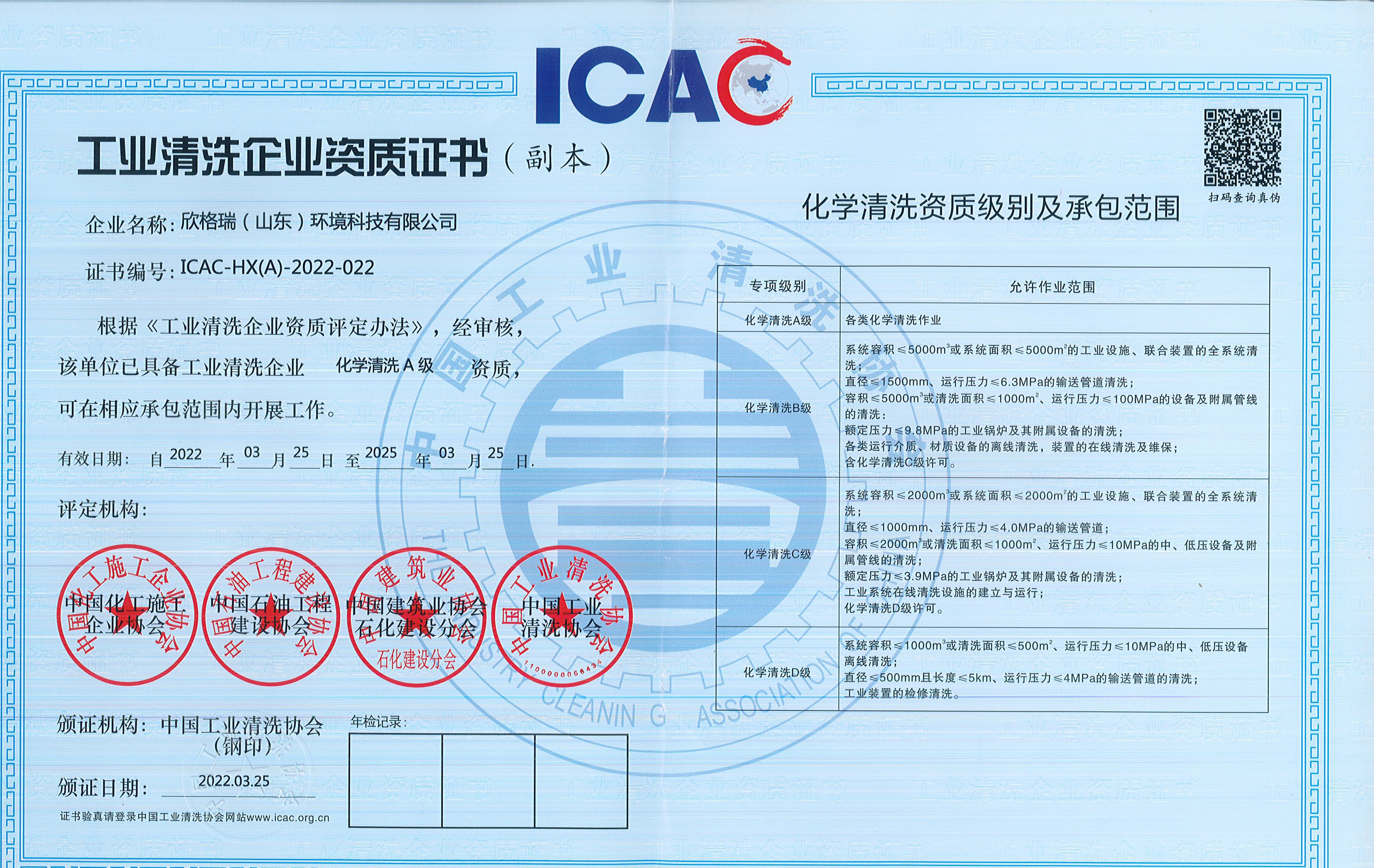 工業(yè)清洗化學(xué)清洗A級(jí)資質(zhì)